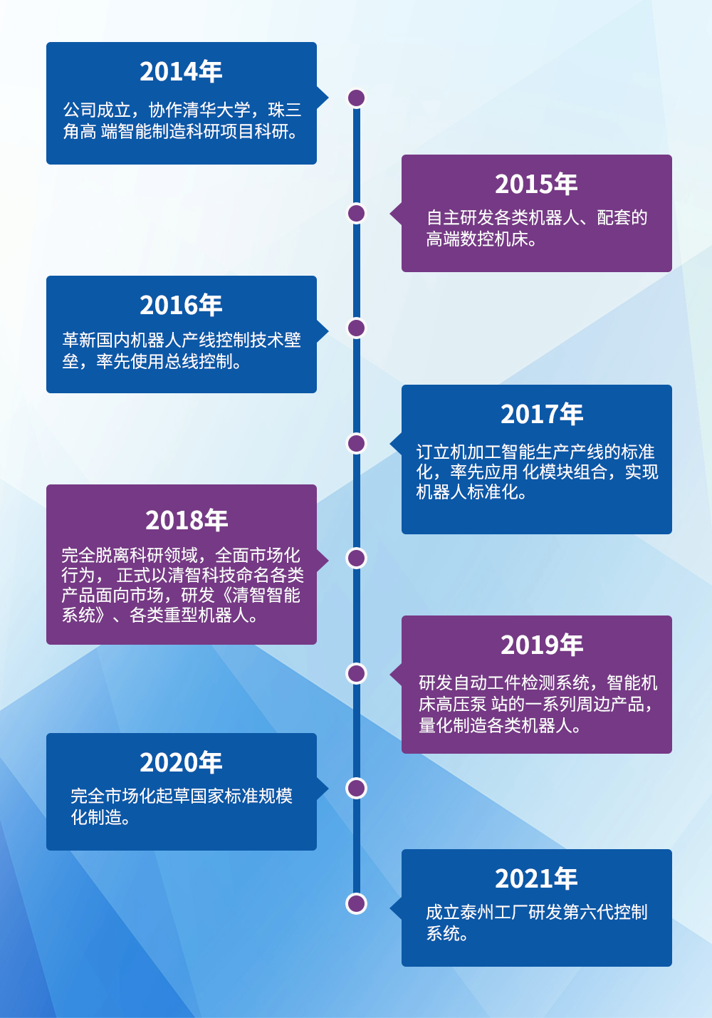 清智企業創立于2014年,公司成立于江蘇省蘇州市吳江區清華大學汽車研究院,與清華大學協同技術合作,致力于研發制造機加工自動化生產線和智能化生產線,并先后獲得各類發明專利40余項、實用新型專利80多項,智能控制系統軟件著作30余項;清智以技術作為企業核心競爭力,核心團隊均來自清華大學,其中教授一名和博士四名,高級工程師5名,中級工程師5名,工程師20余名,在團隊不懈努力下,公司研發諸多行業先進的技術,其中包括機器人先進的結構設計,機器人控制技術,多項技術在行業內已經形成了標桿。