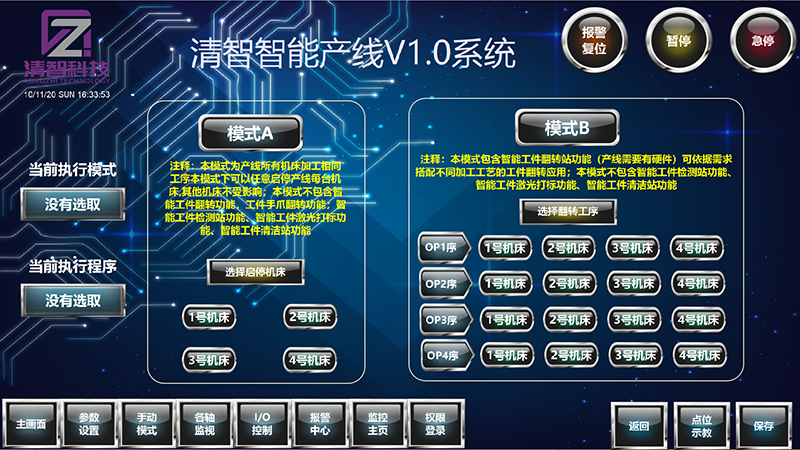 2、高柔性能力:全系搭配清智智能系統V1.0,智能化控制可滿足50個不同工件運動程序存儲和編輯,自由切換產線上的加工產品,產線換產品快至10分鐘;通過選擇自動頭庫功能滿足機械手爪自動交換,滿足不同產品混線加工和快速切換不同產品。