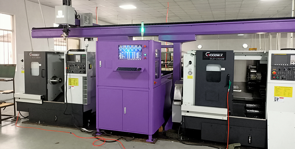 7. HB系列桁架機器人機加工自動化生產線可根據工藝需求組合多臺數控機床組成生產線,可組合成為一拖二機床機加工自動化生產線,標準為一拖二機床自動化產線,并可依據工藝需求混合搭配數控車床、加工中心、數控磨床;